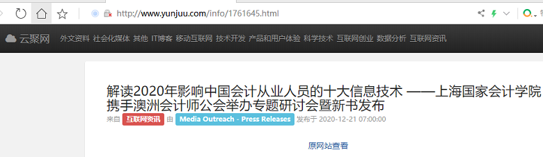 解读2020年影响中国会计从业人员的十大信息技术 ——上海国家会计学院携手澳洲会计师公会举办专题研讨会暨新书发布【2020年12月21日,云聚网】