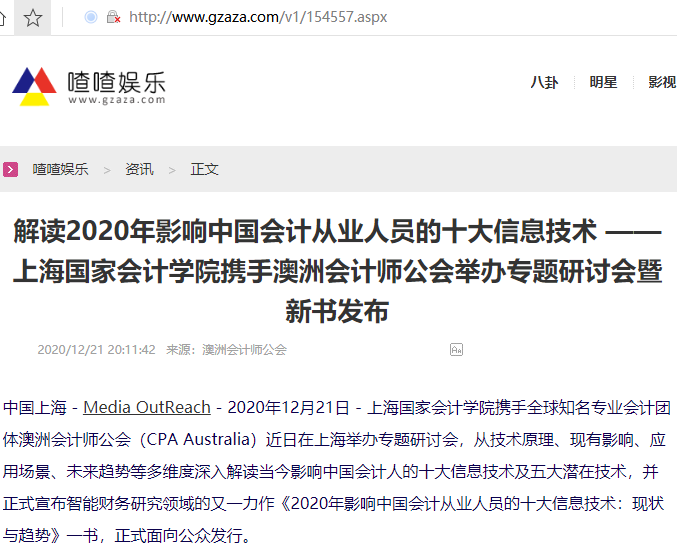解读2020年影响中国会计从业人员的十大信息技术 ——上海国家会计学院携手澳洲会计师公会举办专题研讨会暨新书发布【2020年12月21日,喳喳娱乐】