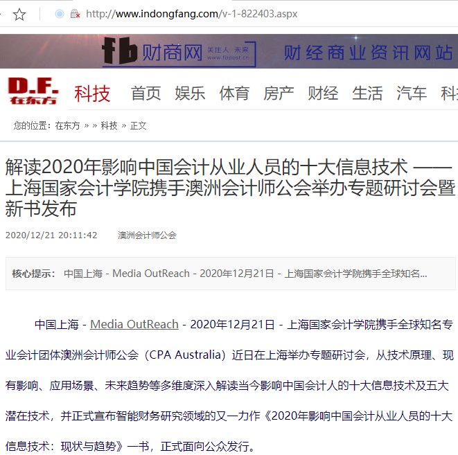 解读2020年影响中国会计从业人员的十大信息技术 ——上海国家会计学院携手澳洲会计师公会举办专题研讨会暨新书发布【2020年12月21日,在东方】