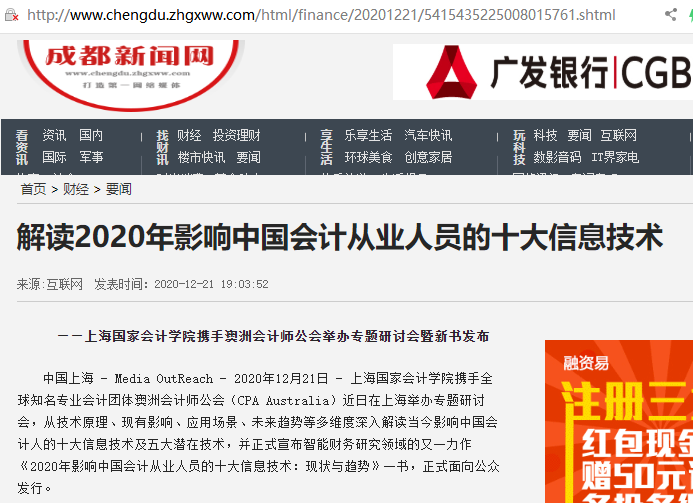解读2020年影响中国会计从业人员的十大信息技术【2020年12月21日,成都新闻网】
