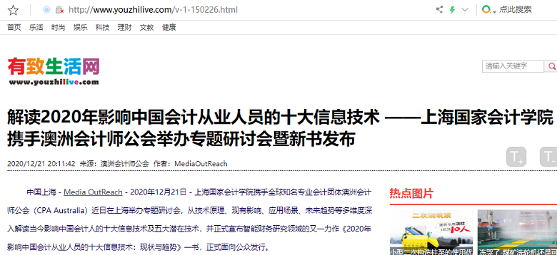 解读2020年影响中国会计从业人员的十大信息技术 ——上海国家会计学院携手澳洲会计师公会举办专题研讨会暨新书发布【2020年12月21日,有致生活网】
