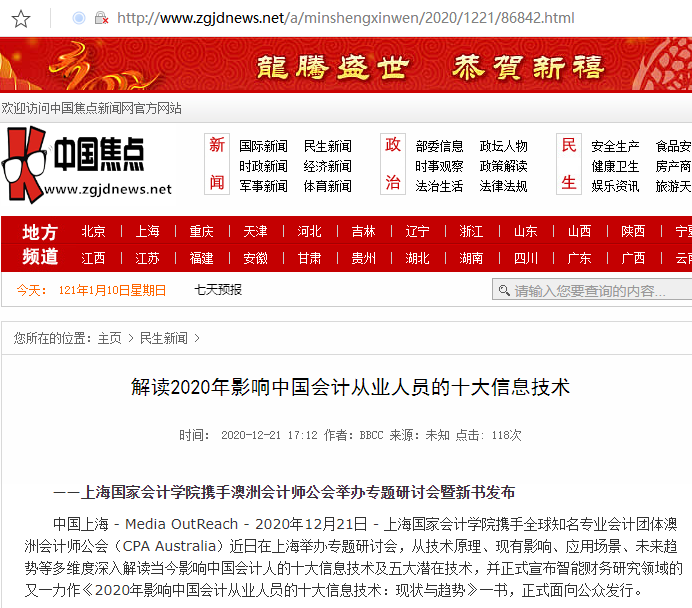 解读2020年影响中国会计从业人员的十大信息技术【2020年12月21日,中国焦点新闻网】