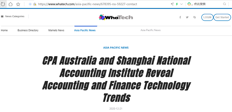 CPA Australia and Shanghai National Accounting Institute Reveal Accounting and Finance Technology Trends【2020年12月21日,Whatech】