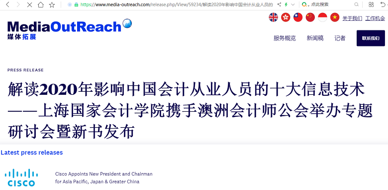 解读2020年影响中国会计从业人员的十大信息技术 ——上海国家会计学院携手澳洲会计师公会举办专题研讨会暨新书发布【2020年12月21日,Media OutReach】