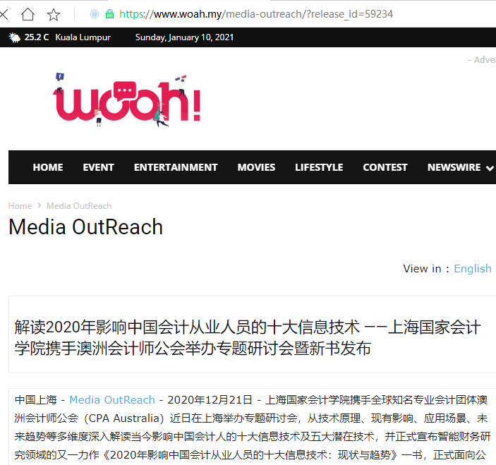 解读2020年影响中国会计从业人员的十大信息技术 ——上海国家会计学院携手澳洲会计师公会举办专题研讨会暨新书发布【2020年12月21日,Woah Malaysia】