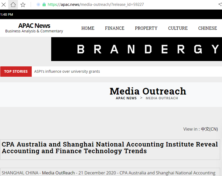 CPA Australia and Shanghai National Accounting Institute Reveal Accounting and Finance Technology Trends【2020年12月21日,APAC News】