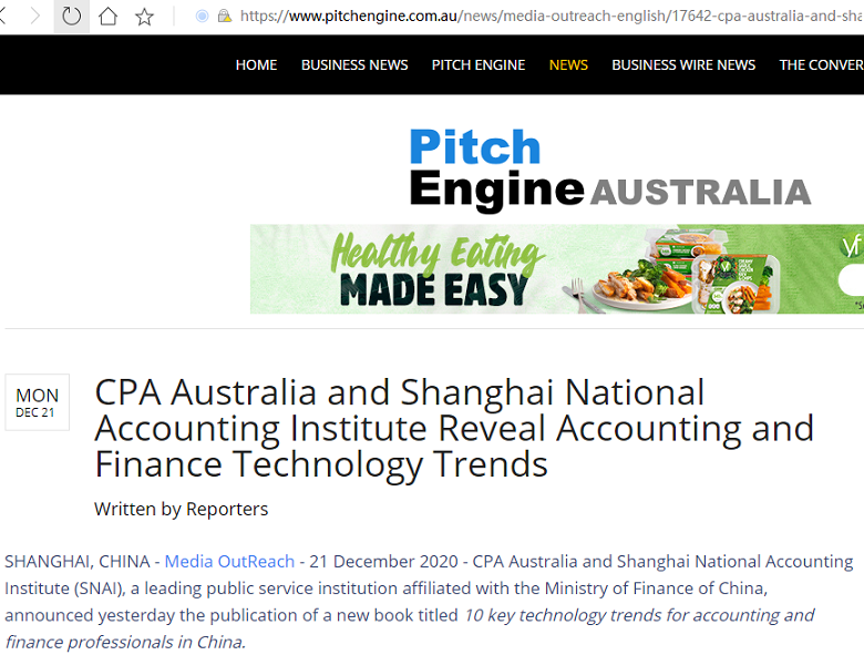 CPA Australia and Shanghai National Accounting Institute Reveal Accounting and Finance Technology Trends【2020年12月21日,Pitch Engine】
