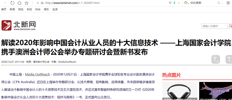 解读2020年影响中国会计从业人员的十大信息技术 ——上海国家会计学院携手澳洲会计师公会举办专题研讨会暨新书发布【2020年12月21日,北新网】