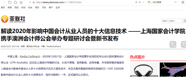 解读2020年影响中国会计从业人员的十大信息技术 ——上海国家会计学院携手澳洲会计师公会举办专题研讨会暨新书发布【2020年12月21日,亚联社】