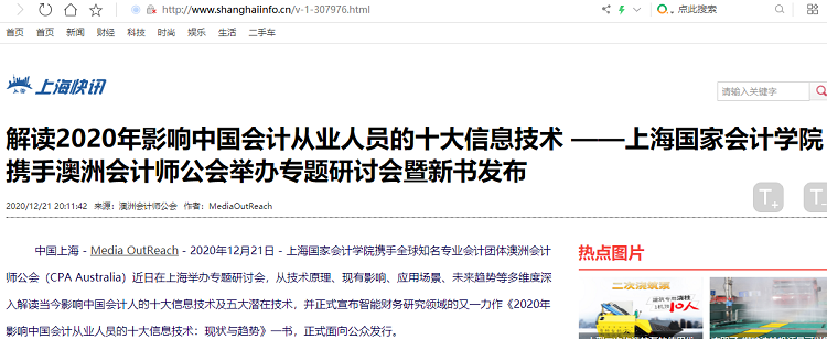 解读2020年影响中国会计从业人员的十大信息技术 ——上海国家会计学院携手澳洲会计师公会举办专题研讨会暨新书发布【2020年12月21日,上海快讯】