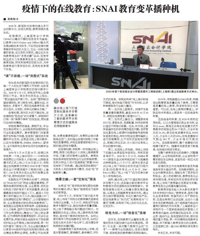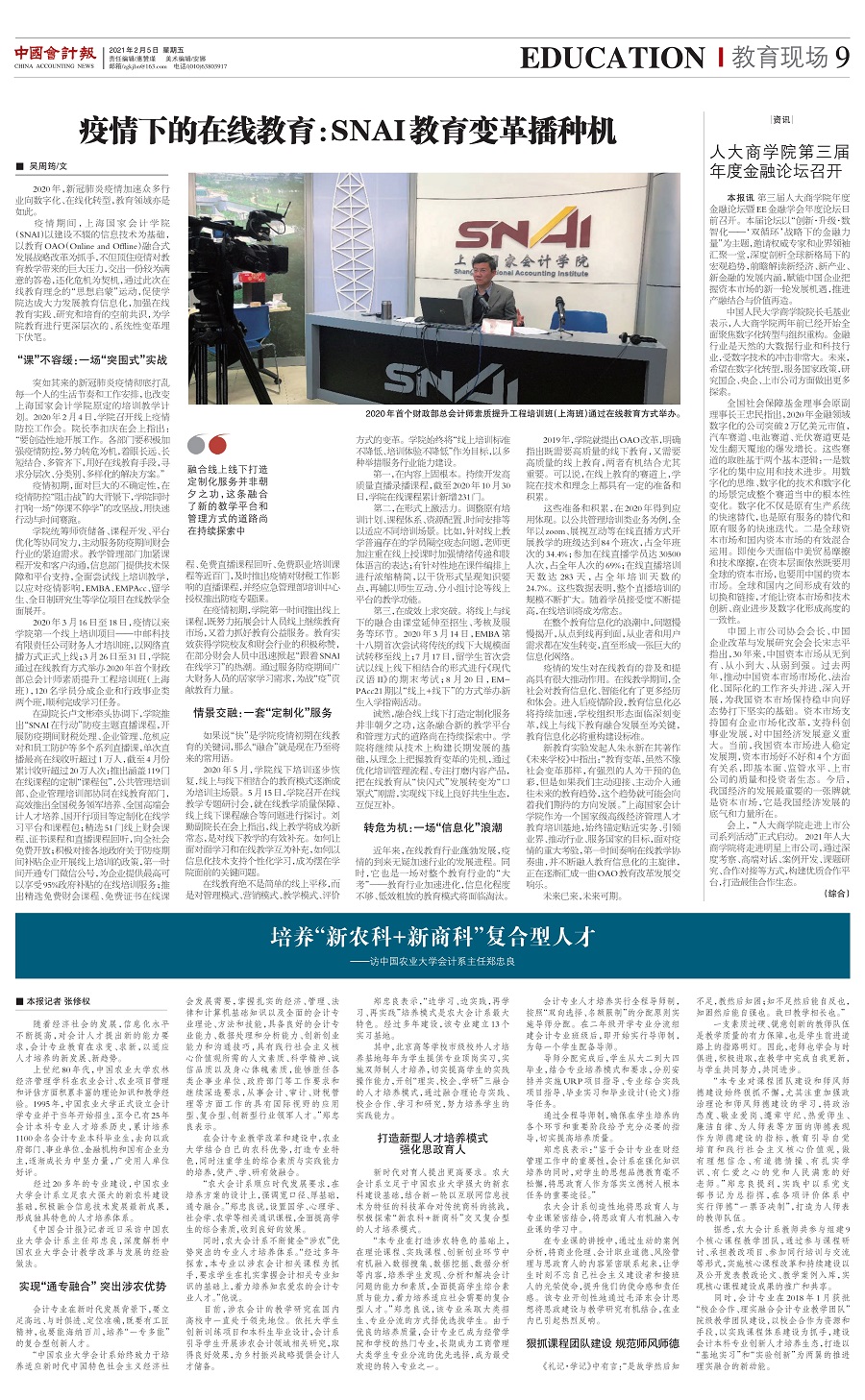 李扣庆:疫情下的在线教育:SNAI 教育变革播种机【2021年2月5日,中国会计报】
