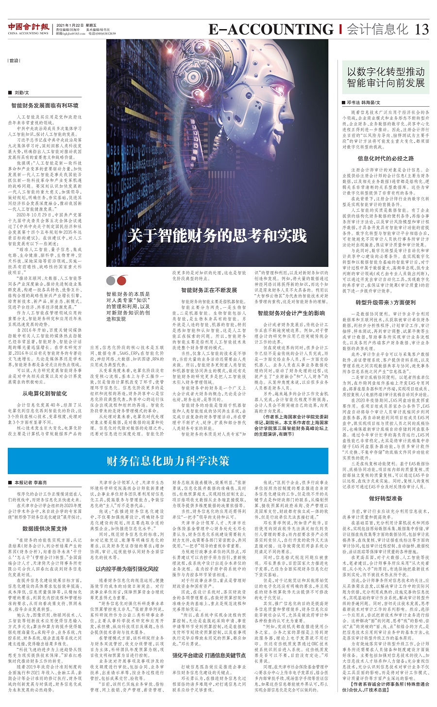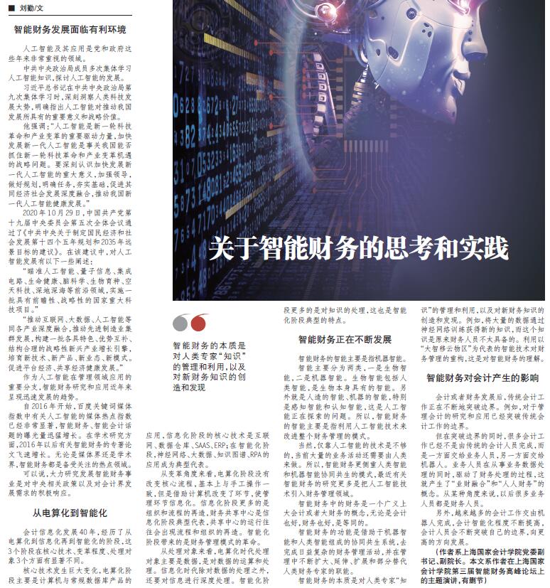 刘勤:关于智能财务的思考和实践【2021年1月22日,中国会计报】
