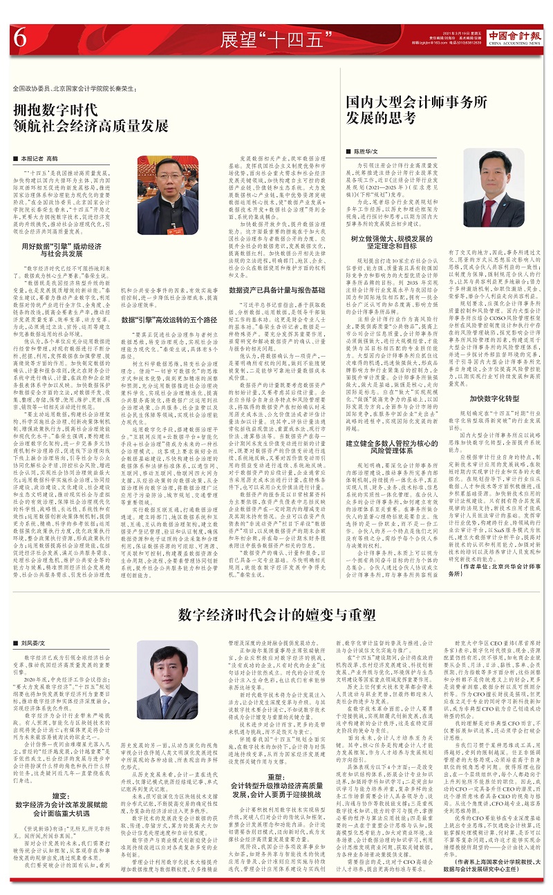 刘凤委:数字经济时代会计的嬗变与重塑【2021年3月19日,中国会计报】