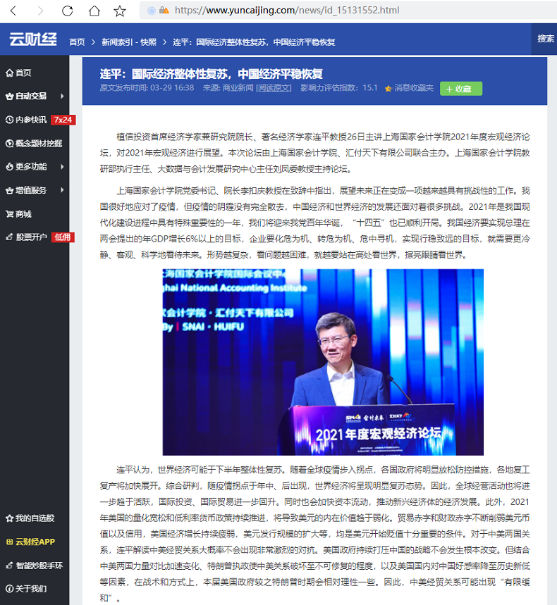 连平:国际经济整体性复苏,中国经济平稳恢复【2021年3月29日,云财经】