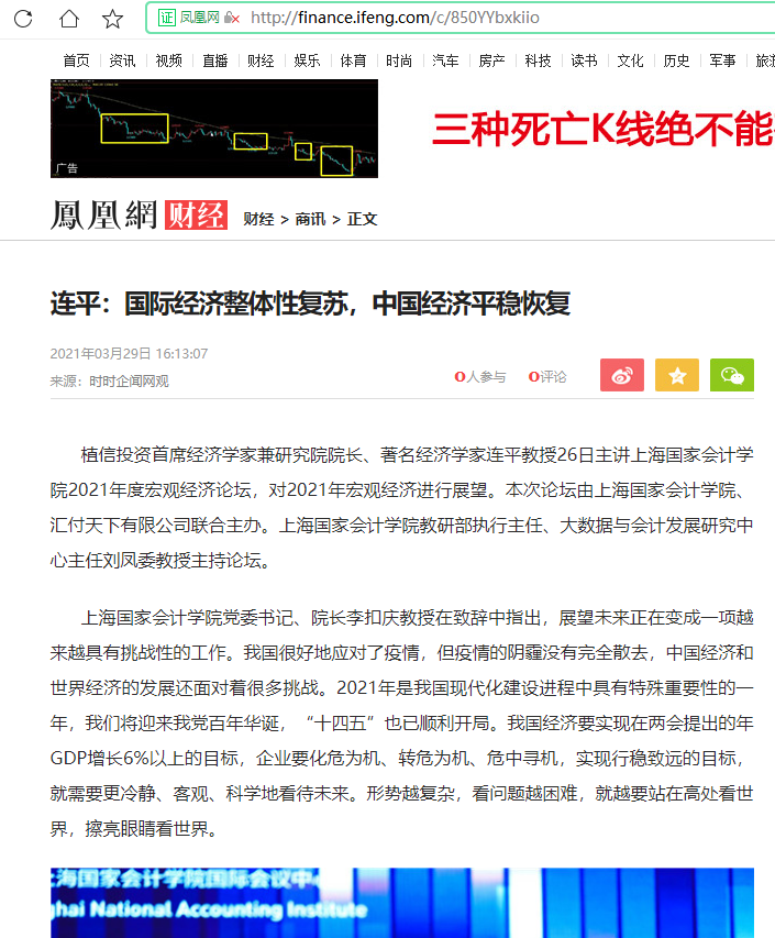 连平:国际经济整体性复苏,中国经济平稳恢复【2021年3月29日,凤凰网】