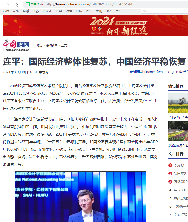 连平:国际经济整体性复苏,中国经济平稳恢复【2021年3月30日,中国网】