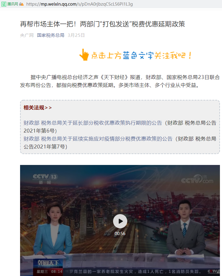 葛玉御:再帮市场主体一把!两部门“打包发送”税费优惠延期政策【2021年3月25日,国家税务总局】