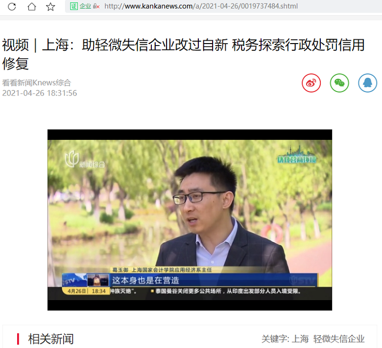 葛玉御:视频|上海:助轻微失信企业改过自新 税务探索行政处罚信用修复【2021年4月26日,看看新闻】