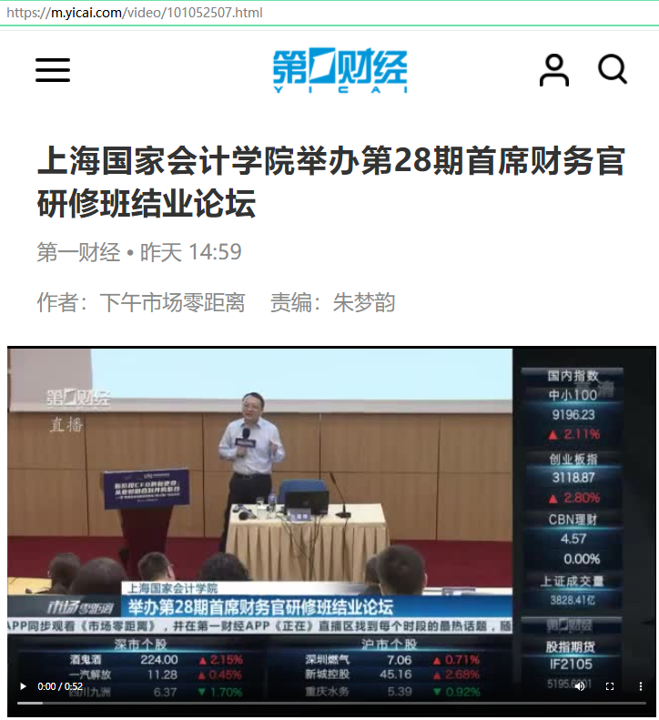 上海国家会计学院举办第28期首席财务官研修班结业论坛【2021年5月17日,第一财经电视台】