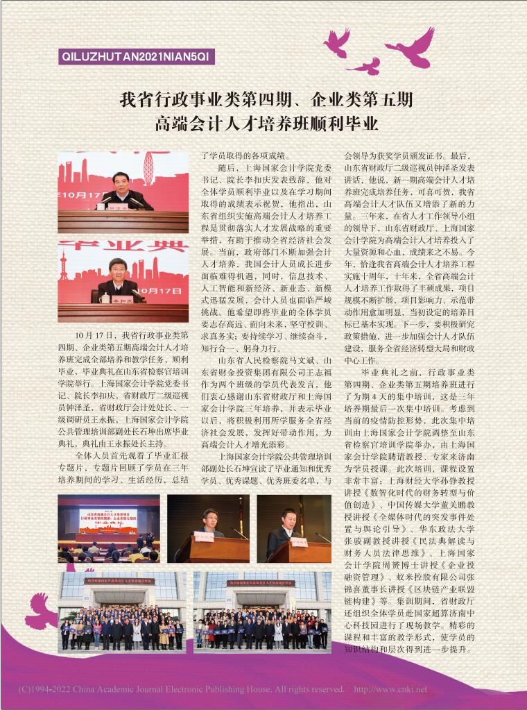 李扣庆:我省行政事业类第四期、企业类第五期高端会计人才培养班顺利毕业【2021年第5期,齐鲁珠坛】