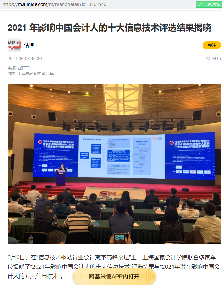 2021 年影响中国会计人的十大信息技术评选结果揭晓【2021年6月6日,SMG广播新闻中心】