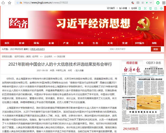 2021年影响中国会计人的十大信息技术评选结果发布会举行【2021年6月8日,经济日报】