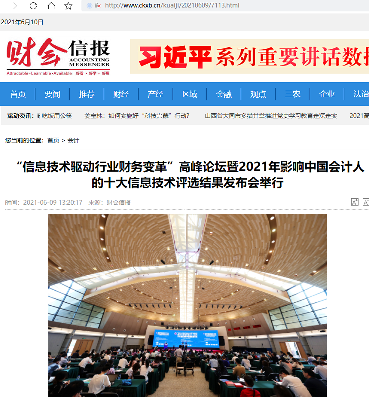 “信息技术驱动行业财务变革”高峰论坛暨2021年影响中国会计人的十大信息技术评选结果发布会举行【2021年6月9日,财会信报】