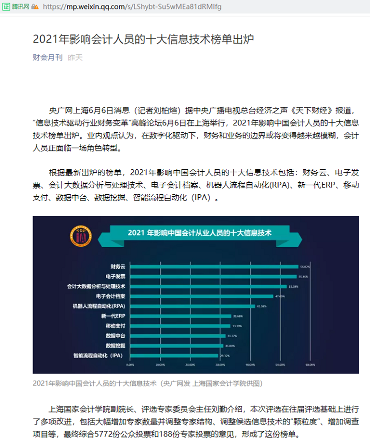 2021年影响会计人员的十大信息技术榜单出炉【2021年6月9日,财会月刊】