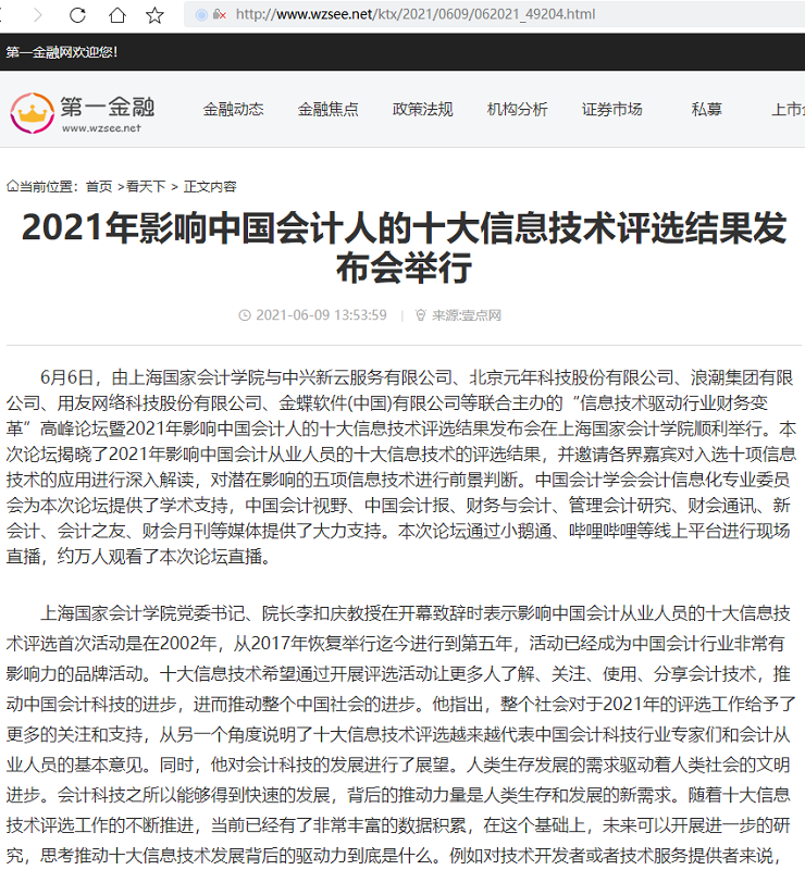 2021年影响中国会计人的十大信息技术评选结果发布会举行【2021年6月9日,看天下-第一金融】