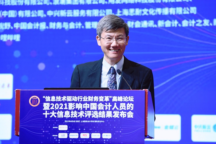上海国家会计学院党委书记、院长李扣庆教授在开幕致辞时表示影响中国会计从业人员的十大信息技术评选首次活动是在2002年,从2017年恢复举行迄今进行到第五年,活动已经成为中国会计行业非常有影响力的品牌活动。十大信息技术希望通过开展评选活动让更多人了解、关注、使用、分享会计技术,推动中国会计科技的进步,进而推动整个中国社会的进步。他指出,整个社会对于2021年的评选工作给予了更多的关注和支持,从另一个角度说明了十大信息技术评选越来越代表中国会计科技行业专家们和会计从业人员的基本意见。同时,他对会计科技的发展进行了展望。人类生存发展的需求驱动着人类社会的文明进步。会计科技之所以能够得到快速的发展,背后的推动力量是人类生存和发展的新需求。随着十大信息技术评选工作的不断推进,当前已经有了非常丰富的数据积累,在这个基础上,未来可以开展进一步的研究,思考推动十大信息技术发展背后的驱动力到底是什么。例如对技术开发者或者技术服务提供者来说,是什么促使他们专注于这些技术的精进;从需求者的角度,使用或者购买特定的技术服务,又是为了达成何种目标。最后,他对会计从业人员表达了期许。中国的会计人,特别是肩负着推动会计科技进步的人,需要思考如何通过推动会计科技的发展来推动中国会计文明的进步。如何使新时代中国的会计文明,在全球发挥更大的影响力。如何通过会计科技的发展,为诚信中国、健康中国、绿色中国的建设等做出更大的贡献。对于从事会计科技发展的人员,包括教育工作者,在推进会计科技发展的过程中,需要朝着明理、增信的方向、用更高的道德和价值标准,着眼于社会更长远的发展,共同推进中国会计科技的进步。
