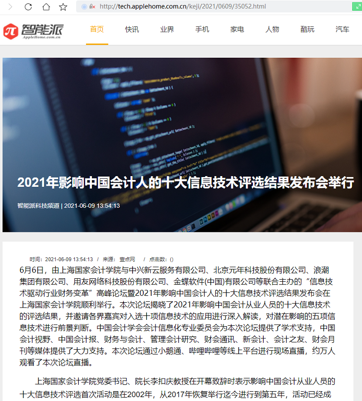 2021年影响中国会计人的十大信息技术评选结果发布会举行【2021年6月9日,智能派】