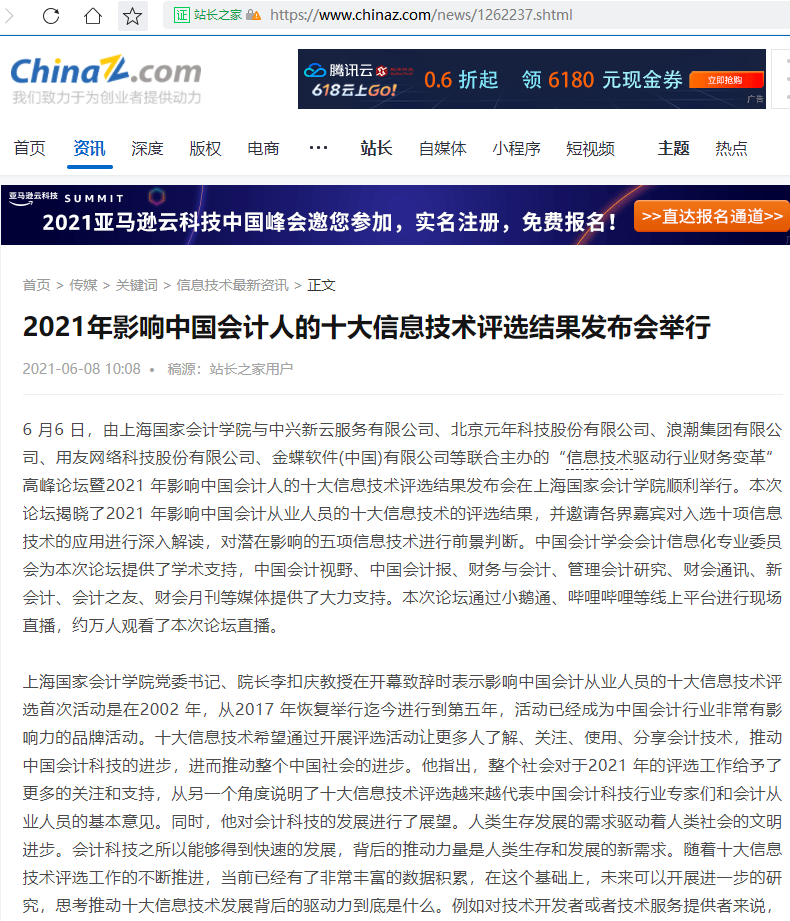 2021年影响中国会计人的十大信息技术评选结果发布会举行【2021年6月8日,站长之家】