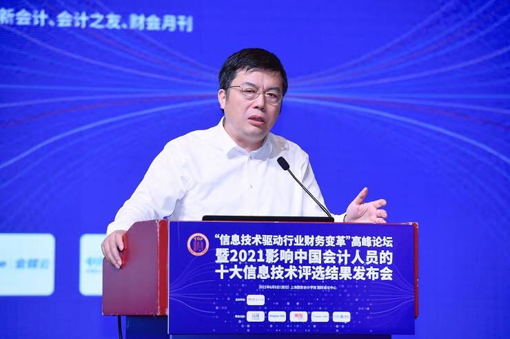 上海国家会计学院党委书记、院长李扣庆教授在开幕致辞时表示影响中国会计从业人员的十大信息技术评选首次活动是在2002年,从2017年恢复举行迄今进行到第五年,活动已经成为中国会计行业非常有影响力的品牌活动。十大信息技术希望通过开展评选活动让更多人了解、关注、使用、分享会计技术,推动中国会计科技的进步,进而推动整个中国社会的进步。他指出,整个社会对于2021年的评选工作给予了更多的关注和支持,从另一个角度说明了十大信息技术评选越来越代表中国会计科技行业专家们和会计从业人员的基本意见。同时,他对会计科技的发展进行了展望。人类生存发展的需求驱动着人类社会的文明进步。会计科技之所以能够得到快速的发展,背后的推动力量是人类生存和发展的新需求。随着十大信息技术评选工作的不断推进,当前已经有了非常丰富的数据积累,在这个基础上,未来可以开展进一步的研究,思考推动十大信息技术发展背后的驱动力到底是什么。例如对技术开发者或者技术服务提供者来说,是什么促使他们专注于这些技术的精进;从需求者的角度,使用或者购买特定的技术服务,又是为了达成何种目标。最后,他对会计从业人员表达了期许。中国的会计人,特别是肩负着推动会计科技进步的人,需要思考如何通过推动会计科技的发展来推动中国会计文明的进步。如何使新时代中国的会计文明,在全球发挥更大的影响力。如何通过会计科技的发展,为诚信中国、健康中国、绿色中国的建设等做出更大的贡献。对于从事会计科技发展的人员,包括教育工作者,在推进会计科技发展的过程中,需要朝着明理、增信的方向、用更高的道德和价值标准,着眼于社会更长远的发展,共同推进中国会计科技的进步。