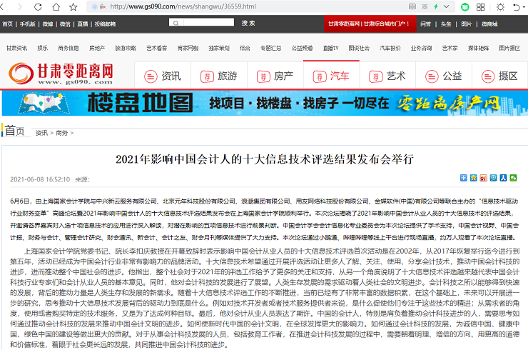 2021年影响中国会计人的十大信息技术评选结果发布会举行【2021年6月8日,甘肃零距离】