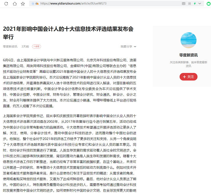 2021年影响中国会计人的十大信息技术评选结果发布会举行【2021年6月8日,一点资讯】
