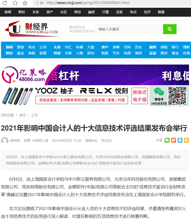 2021年影响中国会计人的十大信息技术评选结果发布会举行【2021年6月8日,财经界】