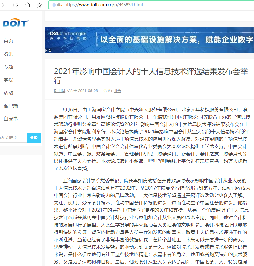 2021年影响中国会计人的十大信息技术评选结果发布会举行【2021年6月8日,DOIT】