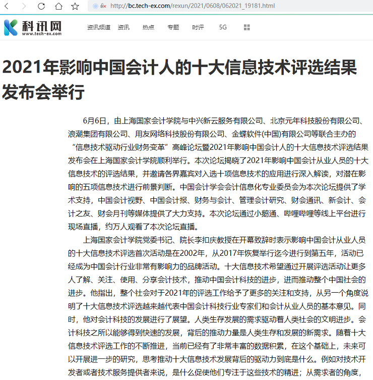 2021年影响中国会计人的十大信息技术评选结果发布会举行【2021年6月8日,科讯网】
