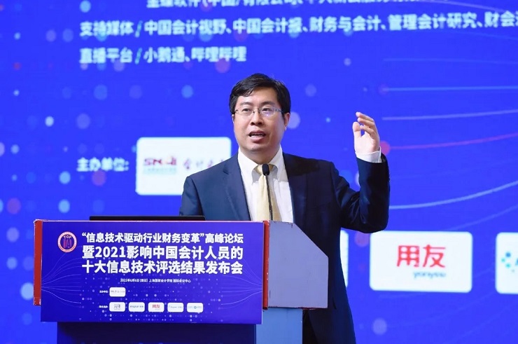 6月6日,由上海国家会计学院与中兴新云服务有限公司、北京元年科技股份有限公司、浪潮集团有限公司、用友网络科技股份有限公司、金蝶软件(中国)有限公司等联合主办的“信息技术驱动行业财务变革”高峰论坛暨2021年影响中国会计人的十大信息技术评选结果发布会在上海国家会计学院顺利举行。本次论坛揭晓了2021年影响中国会计从业人员的十大信息技术的评选结果,并邀请各界嘉宾对入选十项信息技术的应用进行深入解读,对潜在影响的五项信息技术进行前景判断。中国会计学会会计信息化专业委员会为本次论坛提供了学术支持,中国会计视野、中国会计报、财务与会计、管理会计研究、财会通讯、新会计、会计之友、财会月刊等媒体提供了大力支持。本次论坛通过小鹅通、哔哩哔哩等线上平台进行现场直播,约万人观看了本次论坛直播。