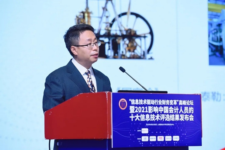 上海国家会计学院党委书记、院长李扣庆教授在开幕致辞时表示影响中国会计从业人员的十大信息技术评选首次活动是在2002年,从2017年恢复举行迄今进行到第五年,活动已经成为中国会计行业非常有影响力的品牌活动。十大信息技术希望通过开展评选活动让更多人了解、关注、使用、分享会计技术,推动中国会计科技的进步,进而推动整个中国社会的进步。他指出,整个社会对于2021年的评选工作给予了更多的关注和支持,从另一个角度说明了十大信息技术评选越来越代表中国会计科技行业专家们和会计从业人员的基本意见。同时,他对会计科技的发展进行了展望。人类生存发展的需求驱动着人类社会的文明进步。会计科技之所以能够得到快速的发展,背后的推动力量是人类生存和发展的新需求。随着十大信息技术评选工作的不断推进,当前已经有了非常丰富的数据积累,在这个基础上,未来可以开展进一步的研究,思考推动十大信息技术发展背后的驱动力到底是什么。例如对技术开发者或者技术服务提供者来说,是什么促使他们专注于这些技术的精进;从需求者的角度,使用或者购买特定的技术服务,又是为了达成何种目标。最后,他对会计从业人员表达了期许。中国的会计人,特别是肩负着推动会计科技进步的人,需要思考如何通过推动会计科技的发展来推动中国会计文明的进步。如何使新时代中国的会计文明,在全球发挥更大的影响力。如何通过会计科技的发展,为诚信中国、健康中国、绿色中国的建设等做出更大的贡献。对于从事会计科技发展的人员,包括教育工作者,在推进会计科技发展的过程中,需要朝着明理、增信的方向、用更高的道德和价值标准,着眼于社会更长远的发展,共同推进中国会计科技的进步。
