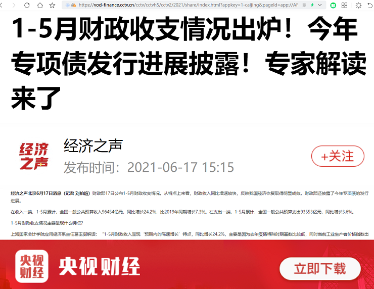 葛玉御:1-5月财政收支情况出炉!今年专项债发行进展披露!专家解读来了【2021年6月17日,央视财经】