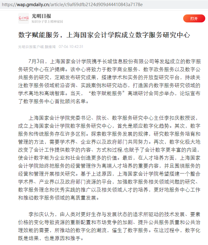 数字赋能服务,上海国家会计学院成立数字服务研究中心【2021年7月6日,光明日报】