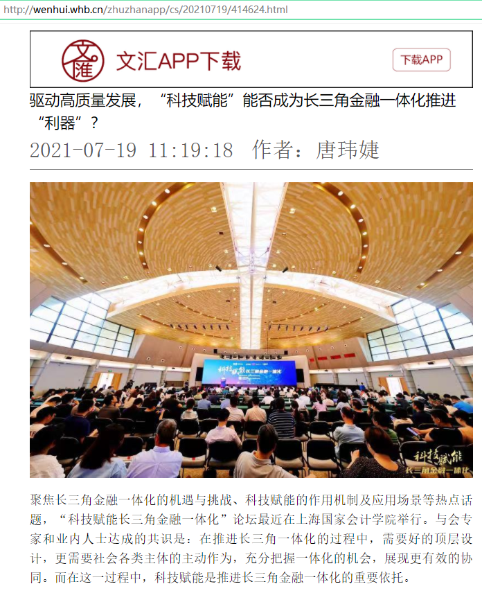 驱动高质量发展,“科技赋能”能否成为长三角金融一体化推进“利器”?【2021年7月19日,文汇报】