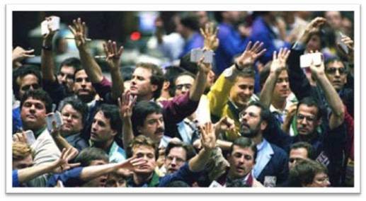 在课程中,宿老师还分享了几个有趣的小常识,比如公开喊价(Pittrading)与Libor利率确定。如下图所示,在如今美国的芝加哥交易所中,还保留着古老的公开喊价的习惯。由于交易大厅人头攒动、嘈杂拥挤,因此交易员通过约定俗成的手势来表示买卖。手势表示是否交易员想要买进或卖出,同时也传达价格和数量。交易员要表示买进时,掌心面向自己,要卖出时,则掌心向外,远离身体。报价格时,将手向身体前方伸出,而报数量时,则用手抚摸脸部。