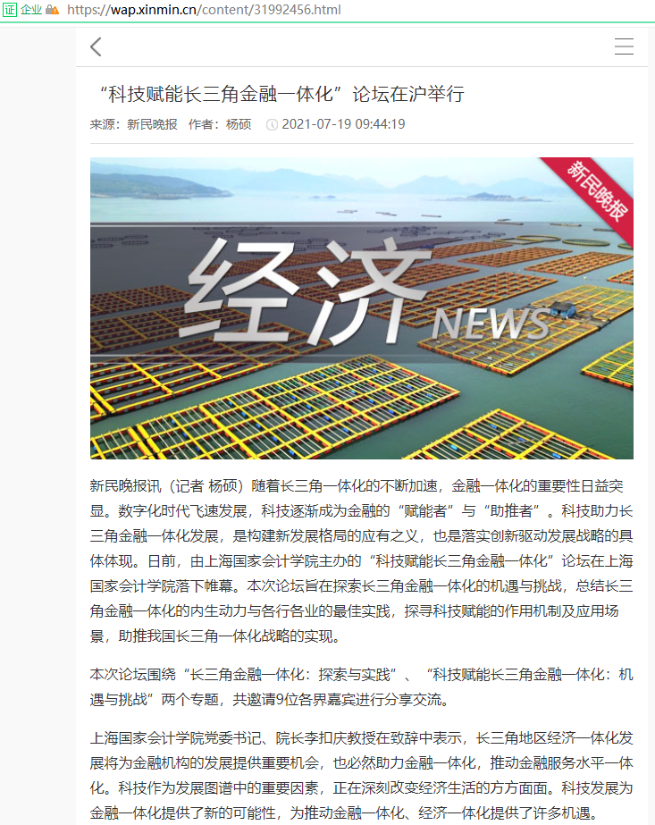 “科技赋能长三角金融一体化”论坛在沪举行【2021年7月19日,新民晚报】