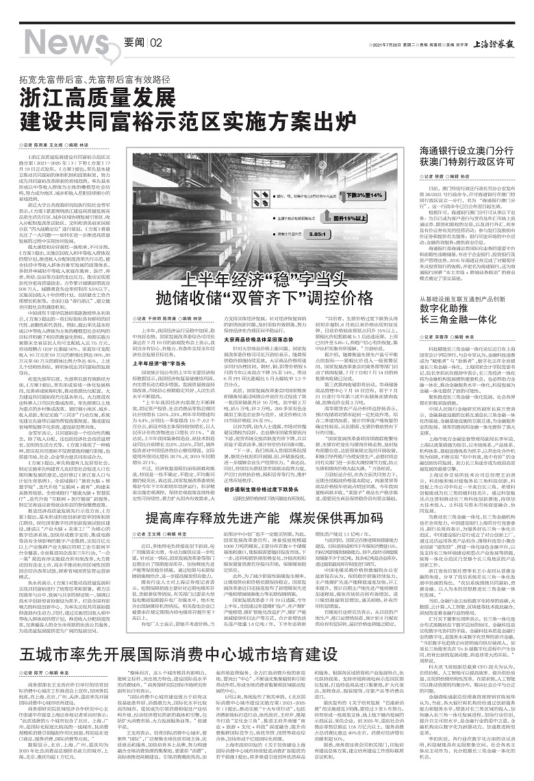 从基础设施互联互通到产品创新 数字化助推长三角金融一体化【2021年7月20日,上海证券报】