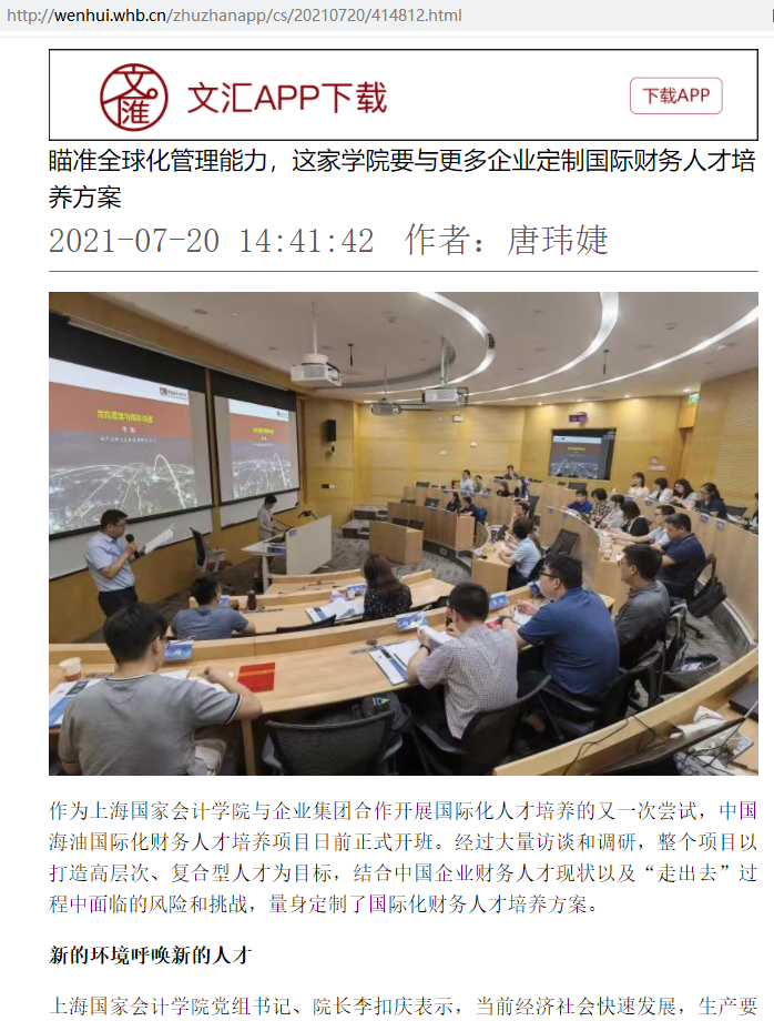 瞄准全球化管理能力,这家学院要与更多企业定制国际财务人才培养方案【2021年7月20日,文汇报】