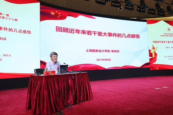 为进一步落实习近平总书记在学校思想政治理论课教师座谈会讲话精神和中央《关于深化新时代学校思想政治理论课改革创新的若干意见》文件精神,研究生党总支、团总支联合打造“SNAI青年思政大讲堂?院长第一课”思政教育品牌。2021年9月2日上午的国际会议中心座无虚席。学院党委书记、院长李扣庆教授以“回顾近年来若干重大事件的几点感悟”为主题,为2021级全体全日制研究生带来一堂生动精彩的思想政治理论课。