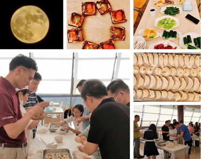 自古以来,中秋节是团圆的节日,寄托了中国人太多信仰与情感。在这特殊的日子里,上国会贴心准备了食材,傍晚时分大家来到食堂,一起动手包饺子。起舞弄清影,信手若捻花,一盘盘饺子跃然呈现。之前听说过世界上没有相同的两片叶子,今天才知道世界上同样也没有相同的两个饺子,大家沉浸在一片欢声笑语中。两位班主任与大家同进晚餐,共贺中秋,一起分享着学院准备的月饼,还有上海陈虹同学带来的本地风味月饼,北京宁静同学带来亲手做的月饼。月圆,人圆,我们在一起,这就是家,我们在一起,这就是节。自由活动时间,好多同学不约而同来到了诚信广场。唱着跑调的歌,玩着不动脑的游戏,聊着海阔天空的话题,仿佛还是一群没有长大的孩子。当皓月升起,清晰明亮的轮廓,圆融润泽的光华,瞬间让人陶醉。明月当空,举杯同庆贺,华灯绽放,天涯共此时。此刻此景,心中满是暖暖的感动,正所谓,浮云追月正中秋,今夜赏月别样景。
