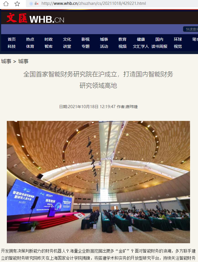 全国首家智能财务研究院在沪成立,打造国内智能财务研究领域高地【2021年10月18日,文汇报】